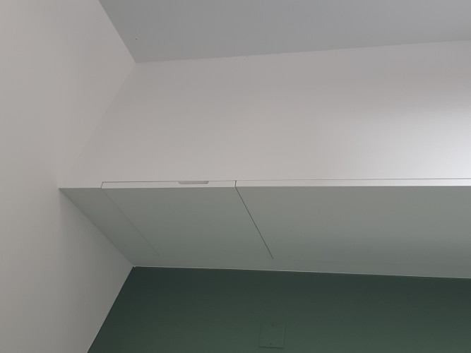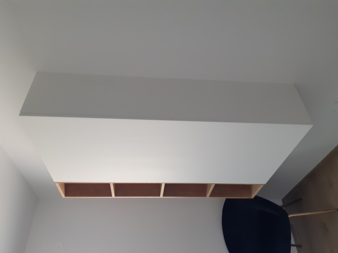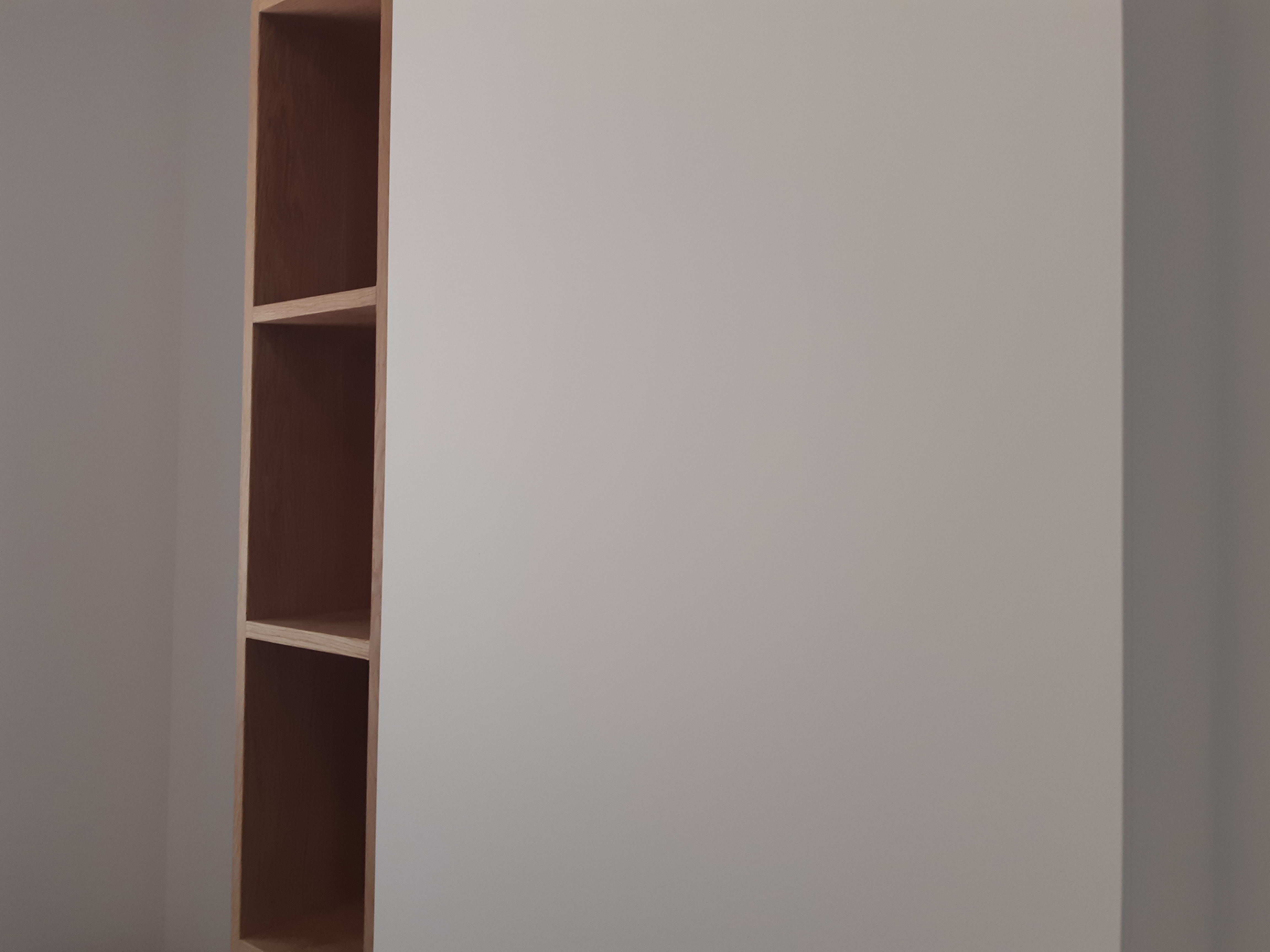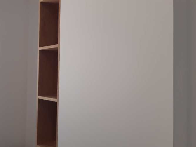 Du médium qui sera peint en blanc de la couleur des murs existants et du chêne par touche dans les niches où les claustras pour réchauffer, faire circuler le regard.