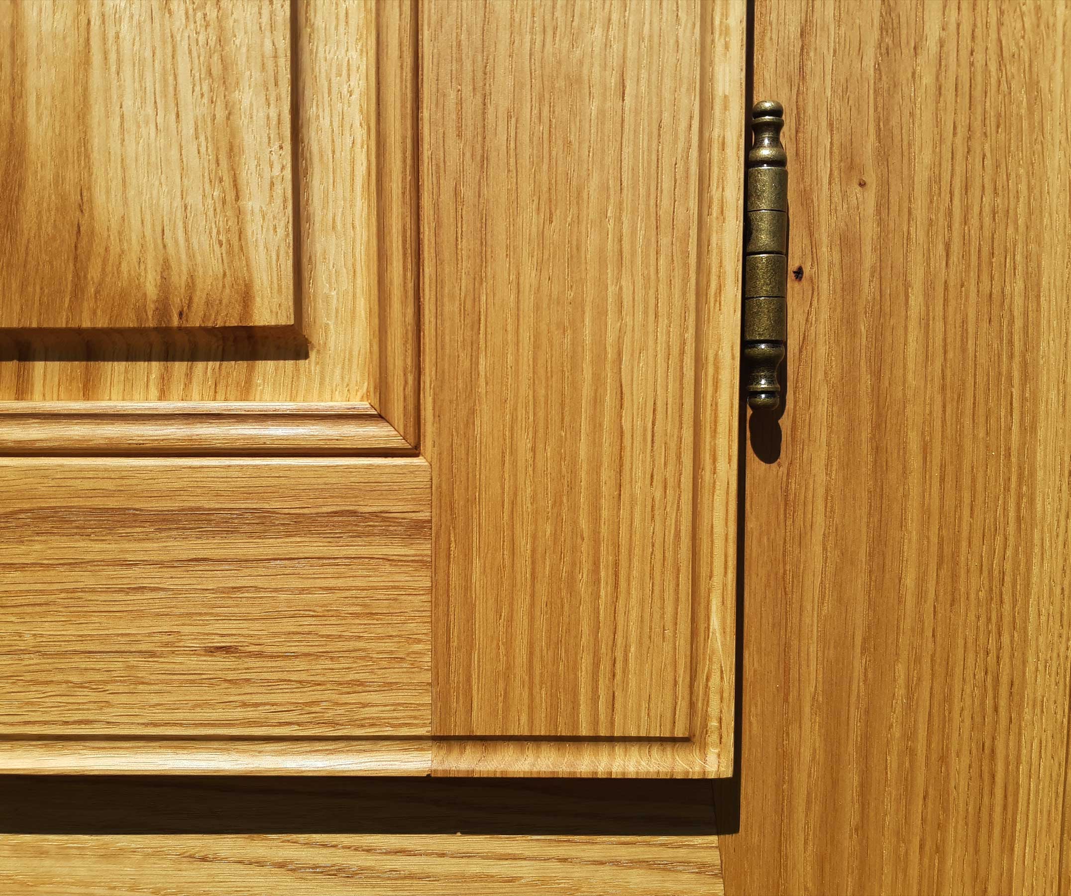 Réplique fidèle des portes si travaillées avec leurs panneautages en mise à mollet et du système de coulissage atypique des tiroirs.